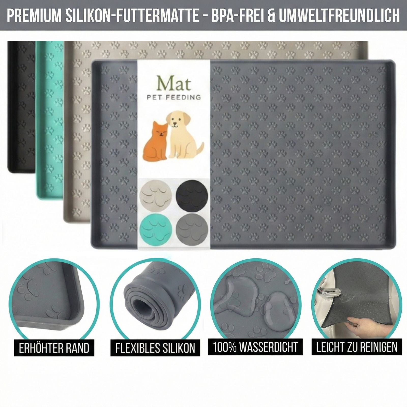 Eine rutschfeste Silikonmatte für Hunde & Katzen, entwickelt für den Alltag in Mietwohnungen.
